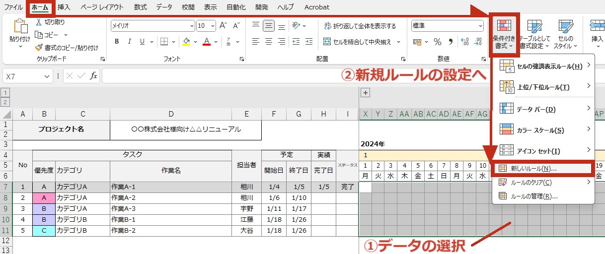 Excel「条件付き書式」で、もっと資料をわかりやすく!④~活用事例・プロジェクトの進捗管理