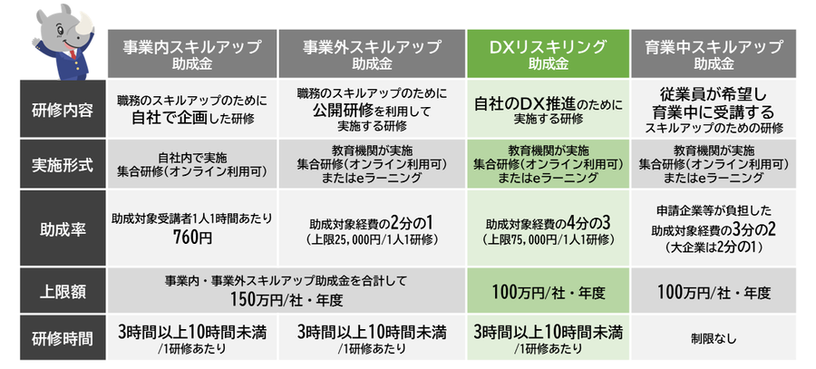 - ご検討中の研修・eラーニング等が助成金対象となるか否かについて、当社では受給対象範囲となるかどうかの判断を下すことができかねます。恐れ入りますが、予めご了承ください